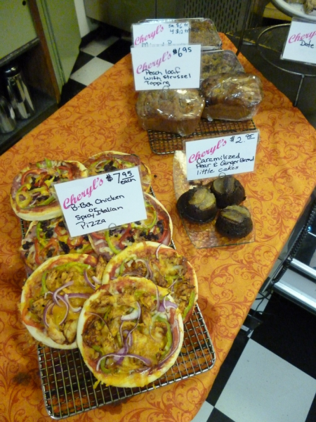 We always have a variety of dishes including local seafood, chicken, beef, pork, and lamb in our showcase. Cheryl's also makes a selection of fresh salads available at all times. In out appetizer showcase we have samosas, spinach & feta pies, beef and vegetable lasagnas, shepherd's pies, macaroni & cheese, and other caseroles. We also have a dessert showcase with items like tarts, cheesecake, creme brule, pate, fruit loaves, pies, and many other goodies. Call us or come in to the shop to see what we have today!